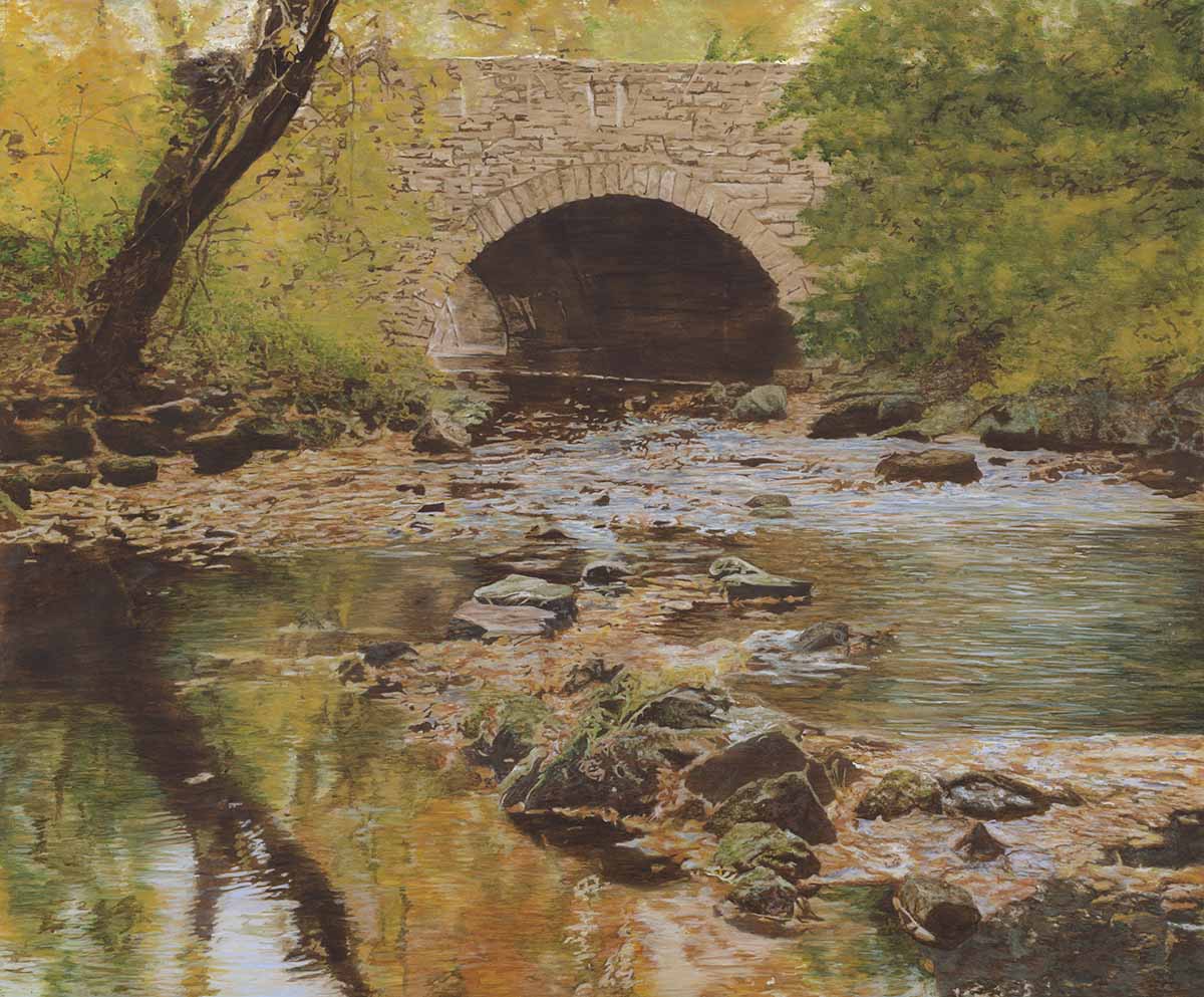 Medium: Pyrography and watercolor on wood panel