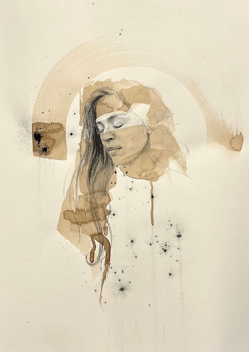 Minimalist drawing with ink washes exploring movement and abstraction.