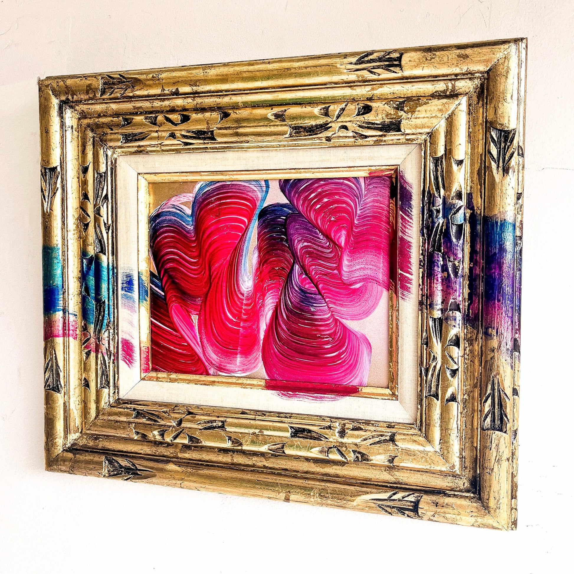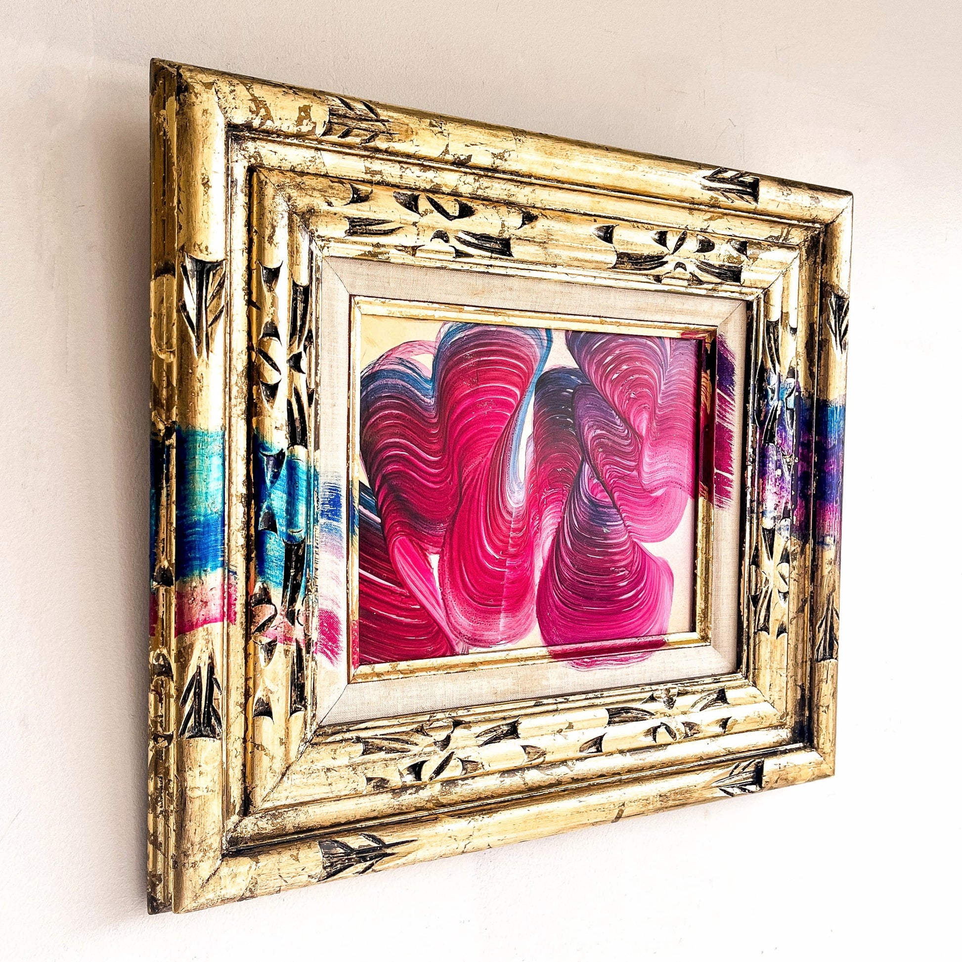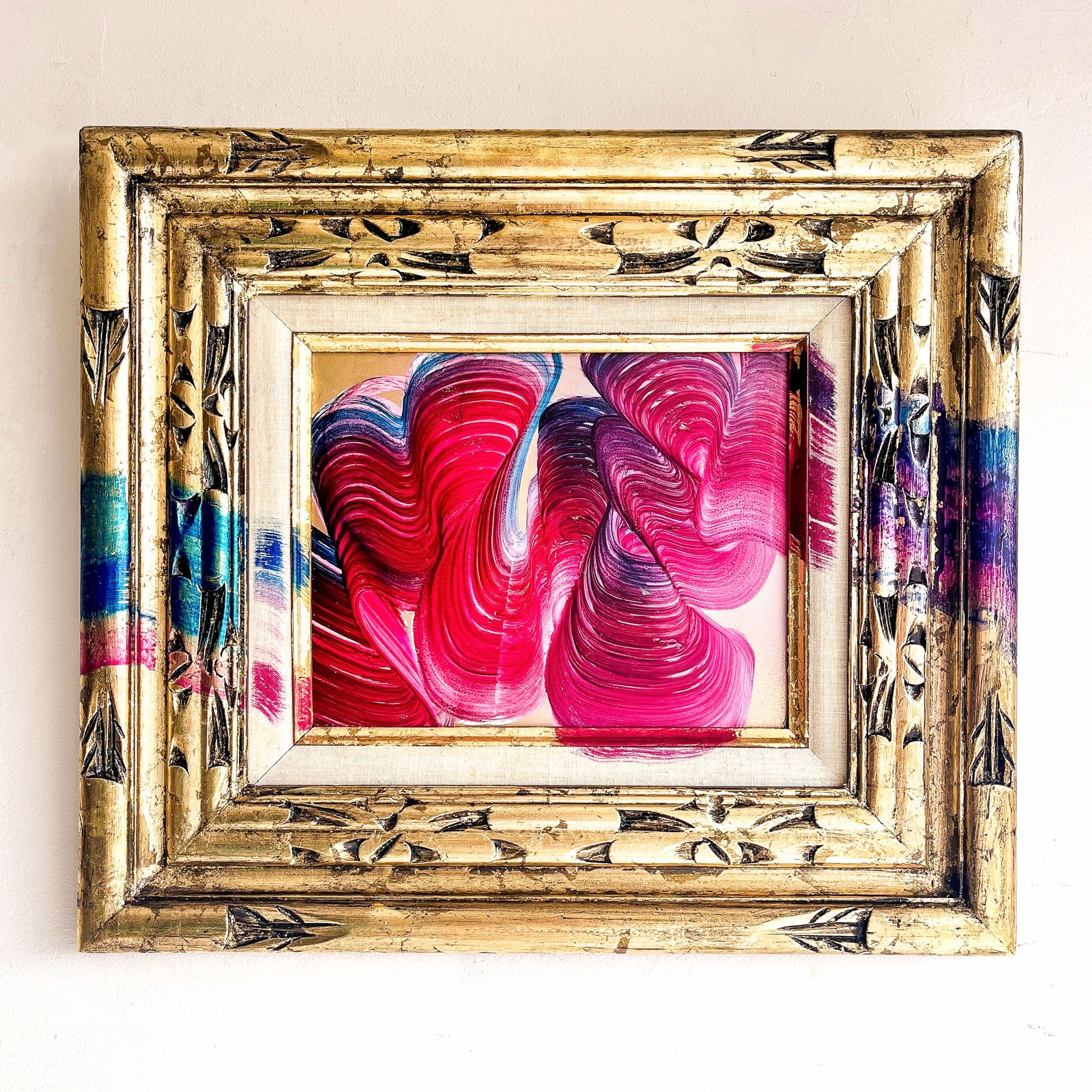A long sweeping brush mark of magenta and blue enter into the left side of this painting weaving back and forth to blend into purple as they exit the frame. Reminiscent of the fleeting moments of life that build over time and change us.