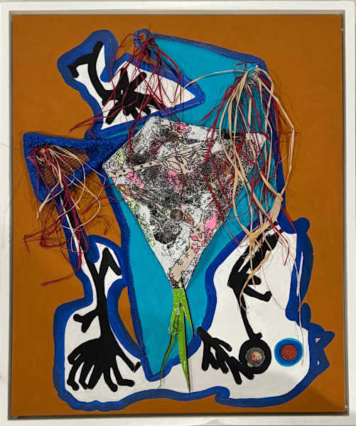 Acrylic paint, rafia, plastic, chicken netting