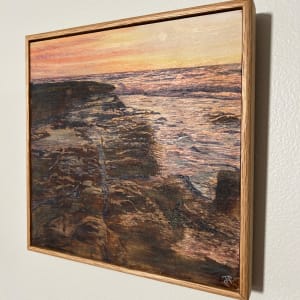 8″ x 8″ pyrography watercolor painting on wood panel inspired by La Jolla Beach in California.