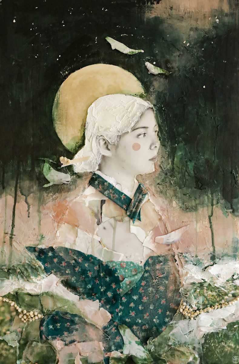 - Medium: Mixed Media on wood