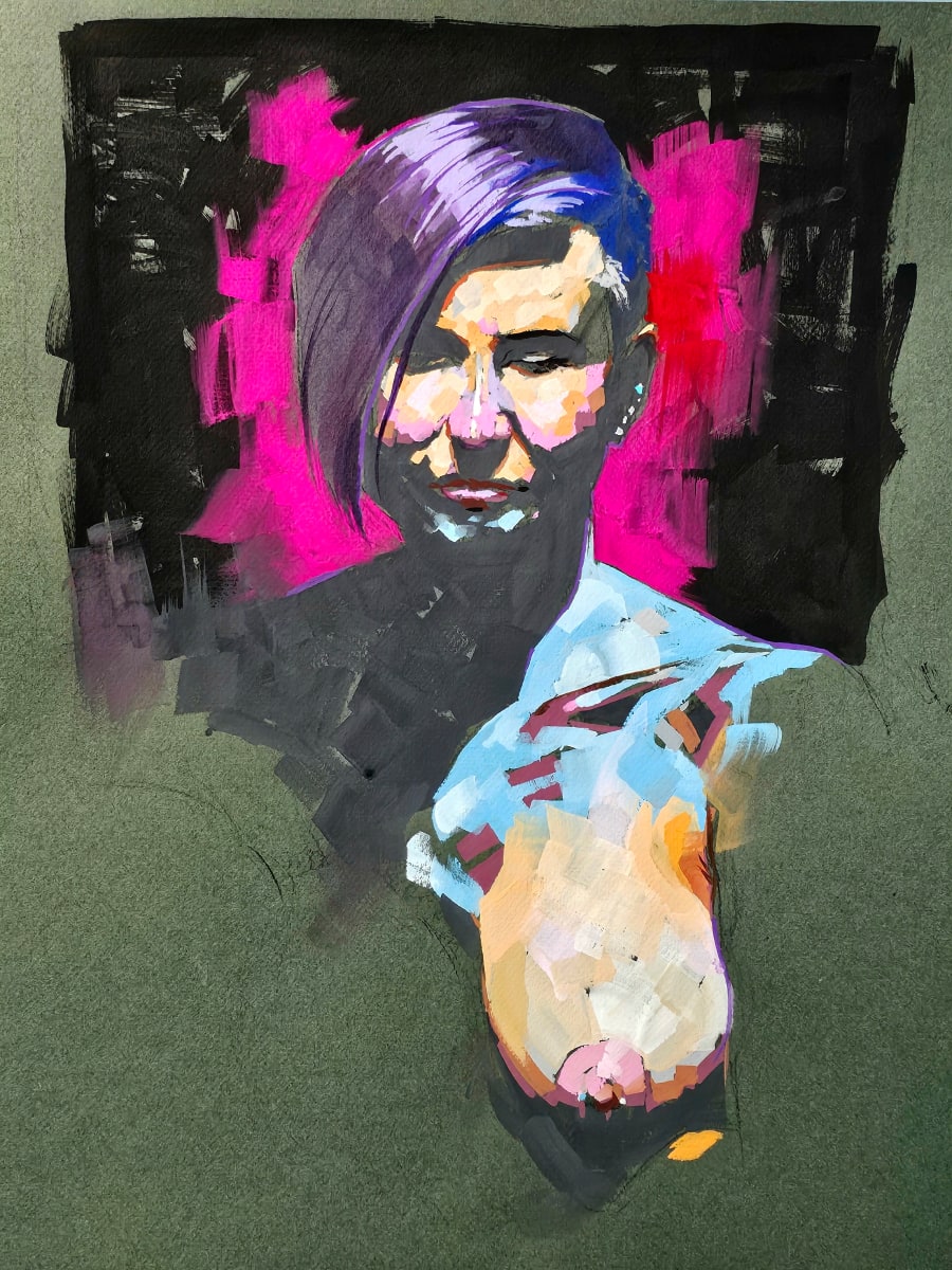 The story of excess vs. minimal is always at work when I paint Sherrie. I believe a lot of my wildest attempts at creating a feeling within the viewer have happen when she has been on the stage.