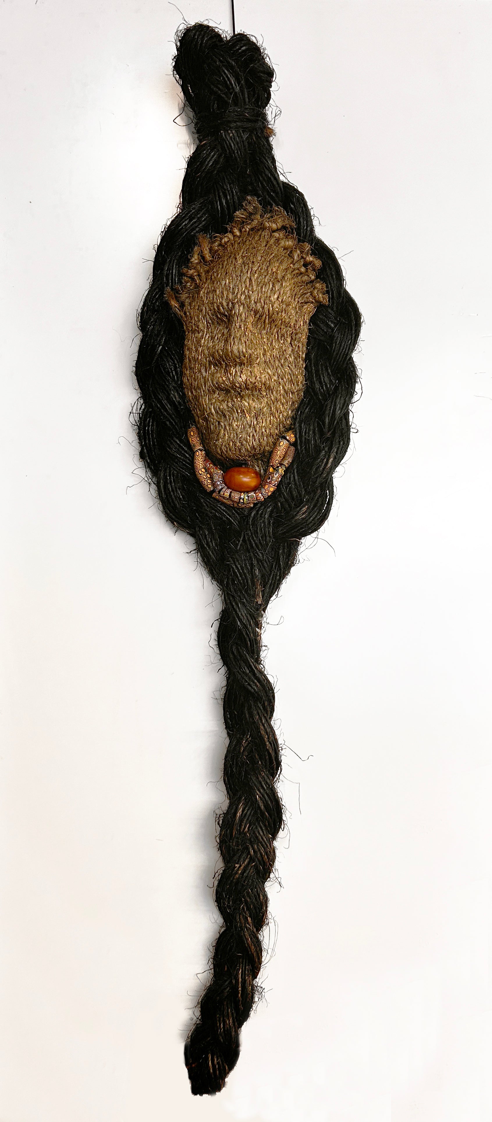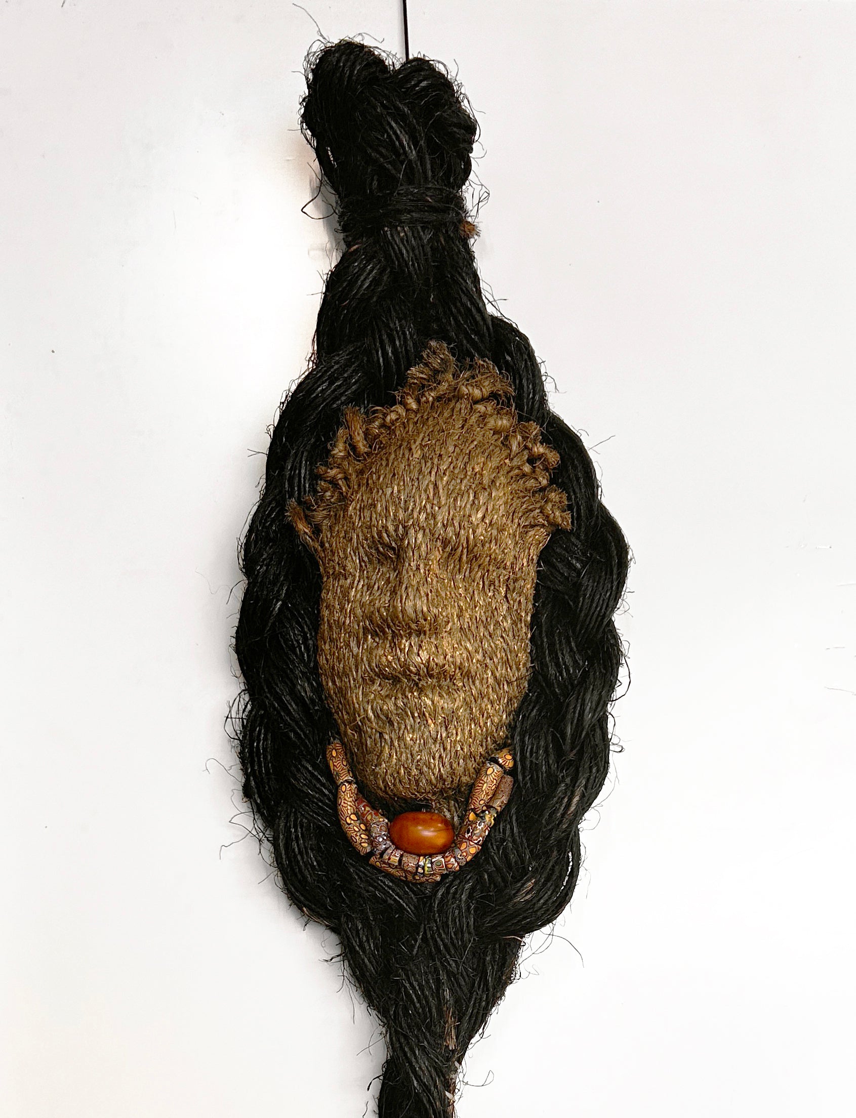 Medium: Jute fiber, African glass beads, polished amber