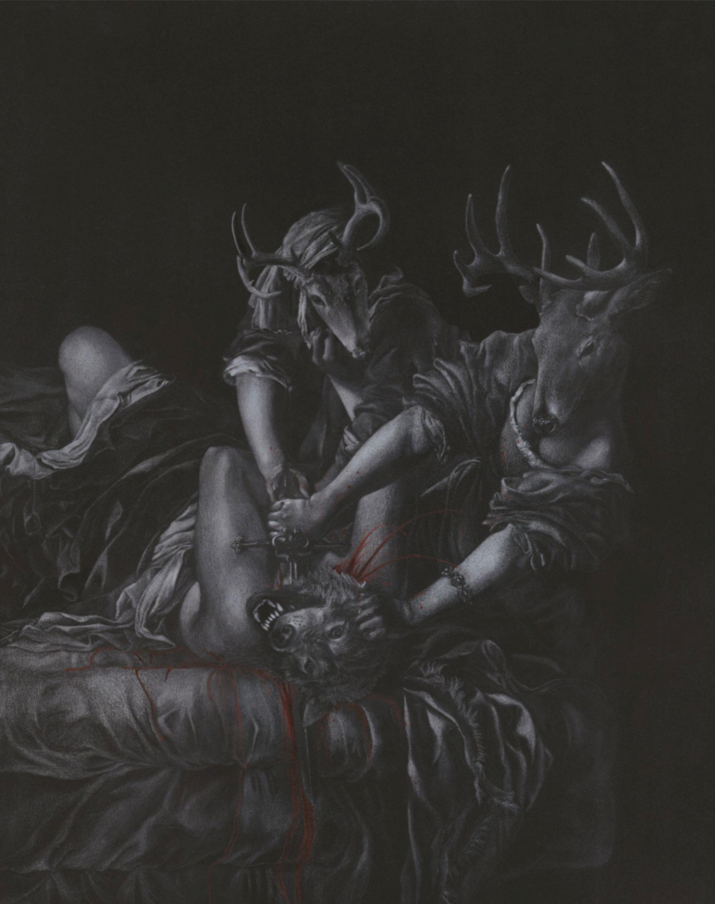 White pencil on black paper