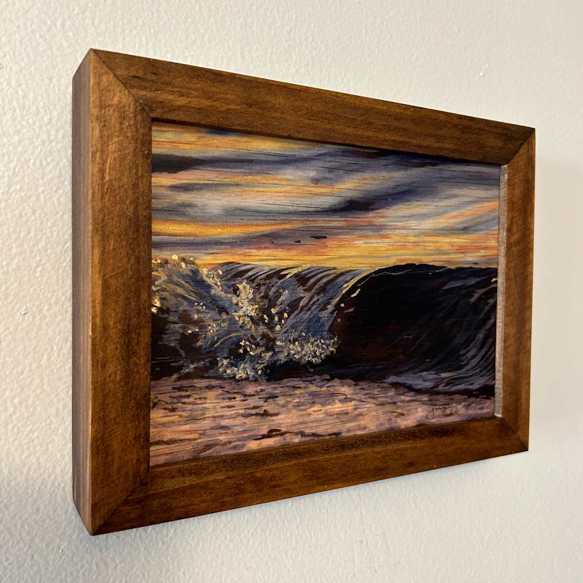 - Medium: Pyrography, Watercolor and Gold Leaf