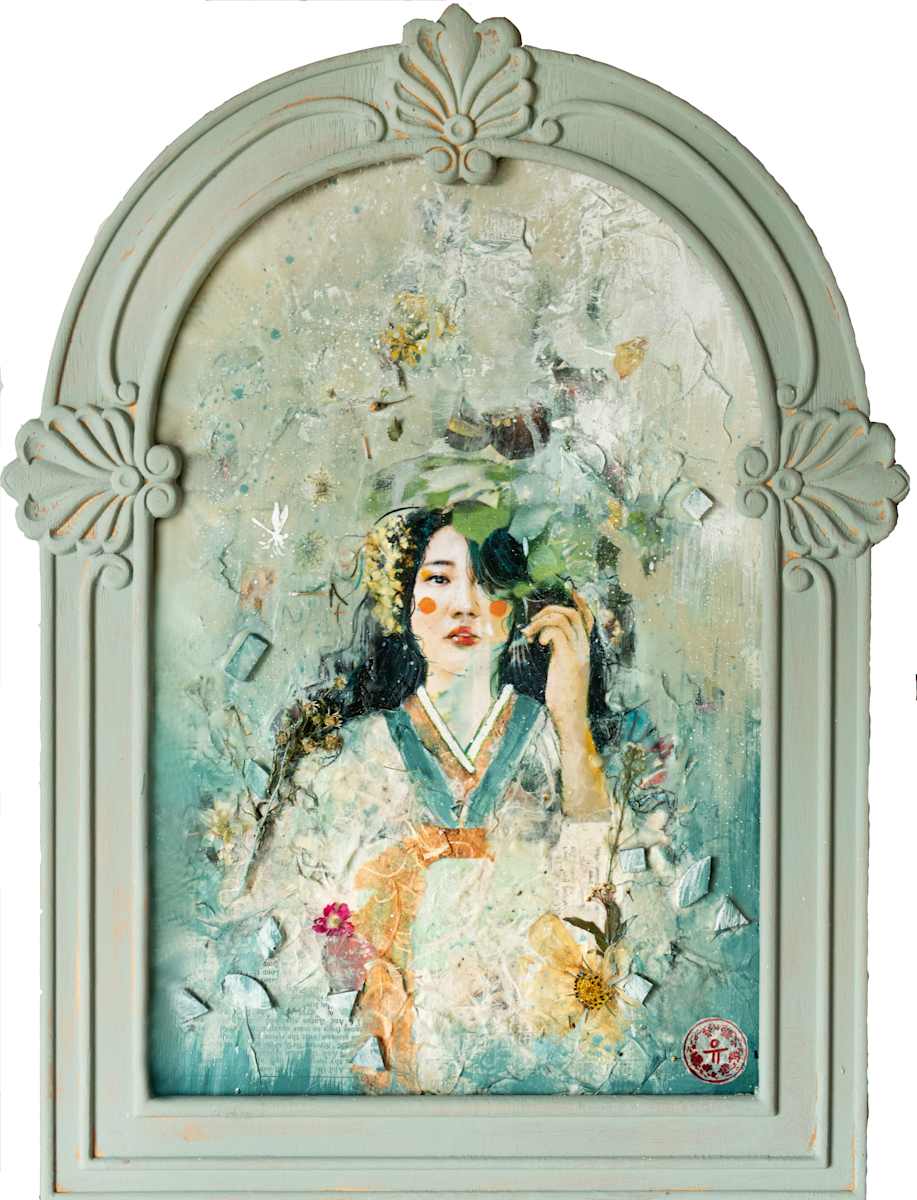 - Medium: Mixed Media on wood